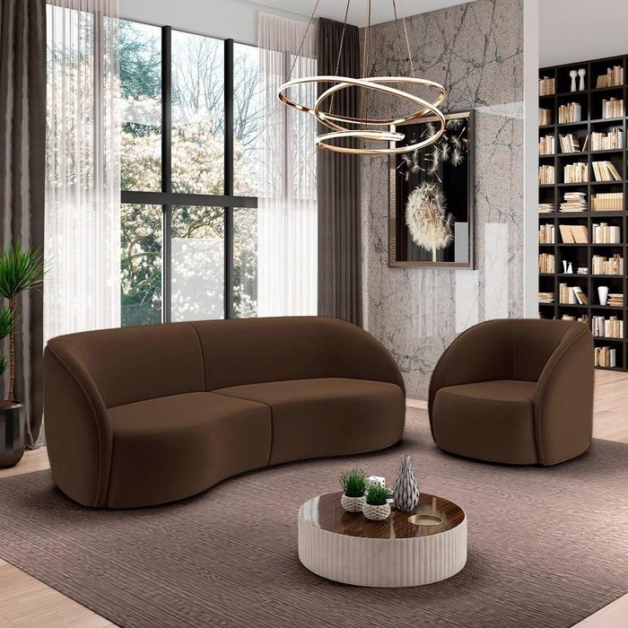 Conjunto Sofá Sala De Estar Bipartido 288cm E Poltrona Clarke Veludo Marrom G45 - Gran Belo