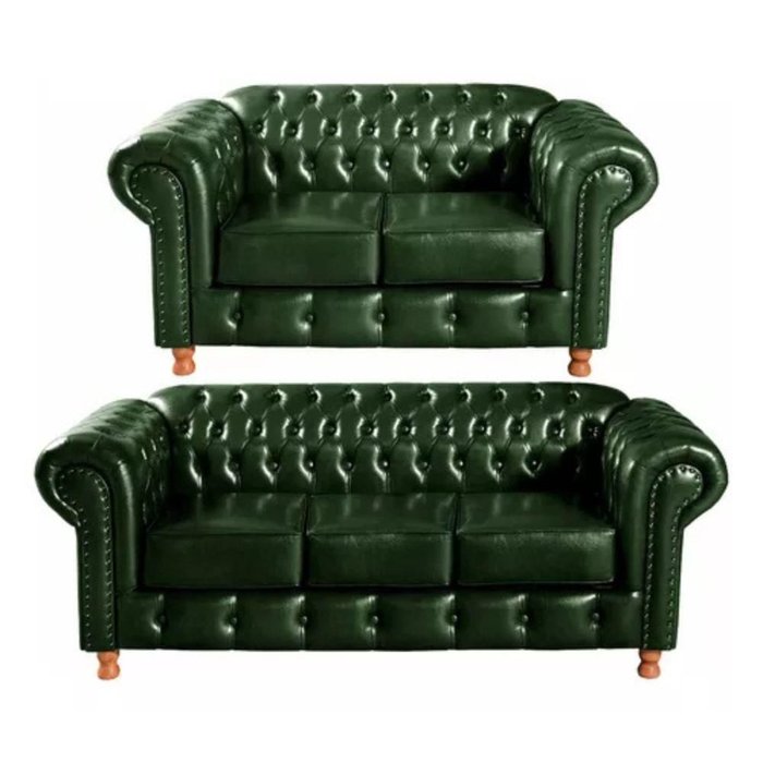 Conjunto Sofás 2 e 3 Lugares Chesterfield Luís Xv Vintage Retrô Capitonê Couro Verde Verde