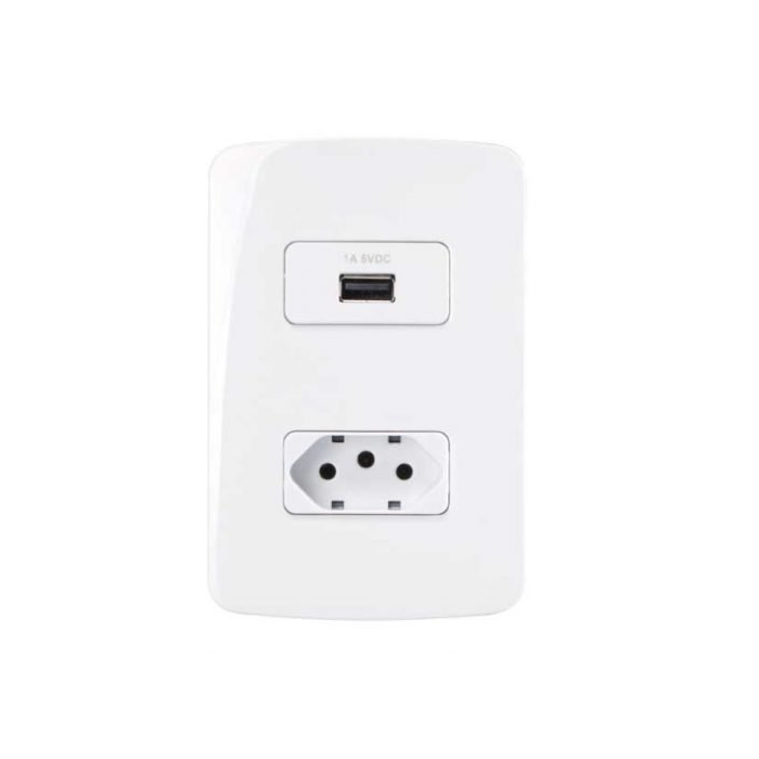 Conjunto Tomada USB Carregador + Tomada 2P+T 10A B3 MarGirius Branco