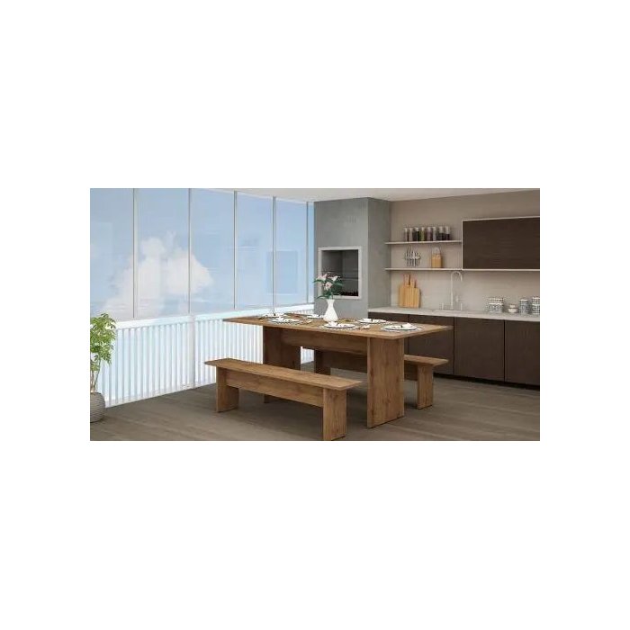 Conjunto Tunisia Mesa e 2 Bancos Madeirado - Gelius - Madeira