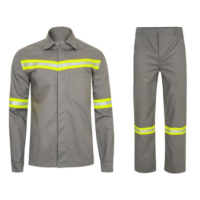 UniformeFaixa RefletivaNr10EPIAnti-ChamasSegurança do TrabalhoConstrução CivilEletricistaEstradaRodoviaTamanho GGMaterial: Brim, Poliéster e AlgodãoCor: Cinza