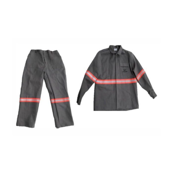 Conjunto de segurança Maicol, com calça e camisa, confeccionadas em uma camada de tecido Uniforte Pro FR, composto por 100% de algodão, ATPV 11 cal/cm2, fabricado pela empresa Companhia de Tecidos Santanense, com gramatura nominal de 7,37 oz/yd2 (260 g/m2). CA Camisa 38764. CA Calça 38765.