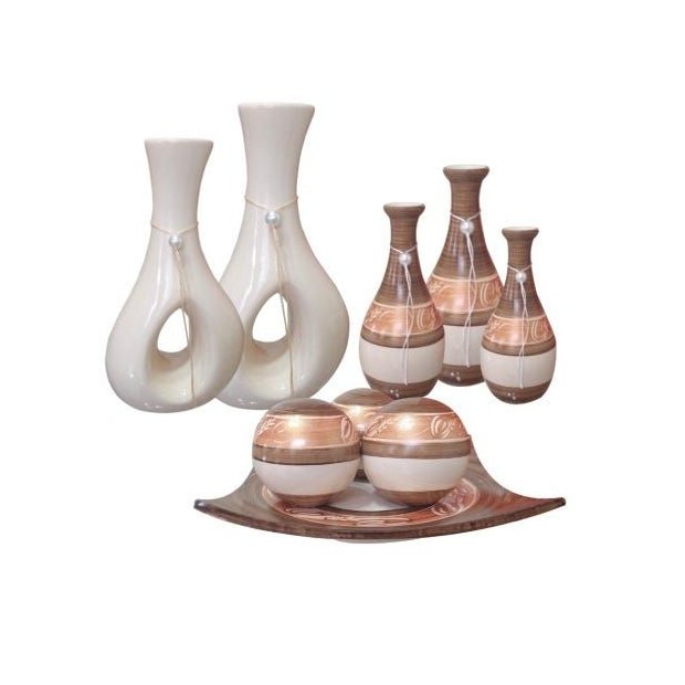 Você recebera em sua casa um kit completo com 9 peças confira os tamanhos a baixo trio de vasinhos, dupla de vasos vazado e fruteira com esferas, feito com o mais alto padrão de qualidade, temos certeza que você vai se surpreender. Aproveite.