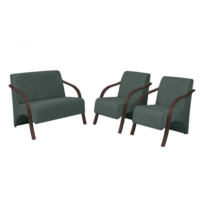Conjunto Vênus 1 Namoradeira 2 Poltronas de 1 Lugar Escritório D Salla Suede Verde