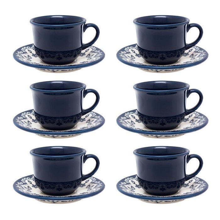 Conjunto Xícara de Chá com Pires 6 Peças Energy OxfordA decoração Energy é composta por tema floral em azul e branco, trazendo a elegância que sua mesa precisa, com estampa na frente e no verso das peças.6 Pires de 15 cm6 Xícaras Chá de 200 mlUso: Resistente a micro-ondas, resistente a lava-louçasMaterial: CerâmicaFormato: RedondoDecoração: ArabescoMarca: OXFORDGarantia: 03 Meses contra defeitos de fabricação.