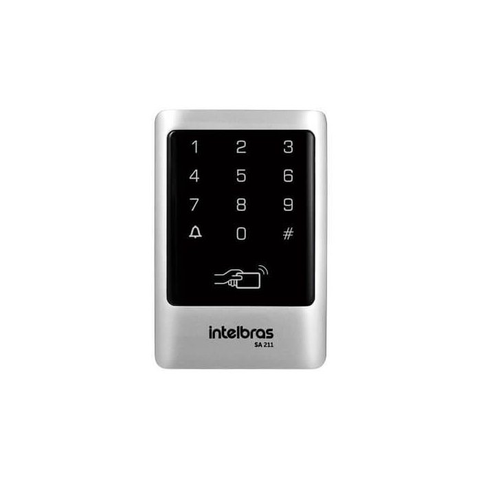 A linha de controladores SA 211 é ideal para quem busca uma solução eficaz para o controle de entrada e saída de pessoas de pequenos e médios ambientes. São produtos de segurança complementares, que trazem mais praticidade e tranquilidade aos usuários. Características - Controle de até 1.000 usuários - Teclado touch screen - Acesso por senha ou proximidade (RFID 125 kHz ou RFID 13,6 MHz) - Pode ser instalado como leitor auxiliar - Gabinete metálico de alta resistência - Compatível com fechaduras eletroímã, eletromecânica e L A P automatizadores de portão O controlador de acesso SA 211 da Intelbras é ideal para quem busca uma solução eficaz para o controle de entrada e saída de pessoas de pequenos e médios ambientes. É um produto de segurança complementar, que traz mais praticidade e tranquilidade aos usuários. Controla até 1.000 usuários É ideal para locais de pequena e média circulação, como academias, clínicas, escolas, condomínios, unidades de saúde, entre outros. Teclado touch screen Maior facilidade na configuração e no cadastro de usuários, além de conferir um visual limpo e moderno ao ambiente.. Duas opções de acesso O acesso pode ser feito por senha ou proximidade (RFID 125 kHz). Funções especiais Possui função Campainha e sinalização audiovisual. Leitor auxiliar O controlador SA 211 pode ser instalado como leitor auxiliar. Mais resistente Como possui gabinete metálico, o SA 211 oferece maior resistência no controle de acesso. Compatibilidade É compatível com fechaduras eletroímã, eletromecânica e automatizadores de portão. Dimensões e peso Conteúdo da embalagem » 1 controlador de acesso » 1 conjunto de cabos para ligação » 1 manual do usuário