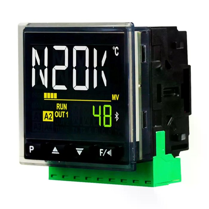 Os controladores de processos da linha N20K48 foram projetados para entregar aos usuários um equipamento tecnológico, com ótimo custo-benefício e muitas funções em um único equipamento. Com designe compacto e inovador, o N20K48 oferece a tecnologia ClickNGo, que permite ao controlador alta capacidade de expansão, para aplicações mais exigentes e padronização de treinamentos das equipes técnicas. O controlador conta ainda com interface BlueTooth nativa, para diagnósticos e comissionamento simples, por meio do aplicativo QuickTime Mobile, reduzindo assim, eventuais tempos de parada. Em contrapartida, a interface USB permite otimização em operações ou produção em bancada, como a configuração em lote. OBS: NÃO ACOMPANHA BASTIDOR E MICROMODULOS CARACTERÍSTICAS GERAIS Designe inovador e o mais compacto do mercado Display amplo, com cores bem visíveis Gabinete com profundidade compacta, ocupando menos espaço Diagnósticos wireless e fácil manutenção, com aplicativos nativos QuickTune e QuickTime, para gestão das configurações e controle das informações, respectivamente Recuros adaptáveis, por meio da tecnologia ClickNGo, que permite maior capacidade de expansão com micromódulos Configuração amigável para computadores e smartphones CARACTERÍSTICAS TÉCNICAS Tensão de alimentação: 12...24Vcc Entradas: Termopares J, K, T, E, S, N, R, B Termorresistência Pt100 0-50 mV, 0-5 V, 0-10 V, 0-20 mA e 4-20 mA Tipo de controle: PID (PMW, sintonia automática) Ação de controle: Aquecimento ou Refrigeração Saídas: Pulso: 1 Relé 3A: 1 Consumo de energia: 10VA Funções especiais: Soft-Start Detecção de laço PID aberto Evento de Rampas e Patamares 4 Alarmes (9 tipos de alarme) função Timer Grau de proteção: IP65 Materiais: Policarbonato e Plástico ABS (UL94 V2) Dimensões (AxLxP): 48x48 ACESSE O MANUAL N20K48