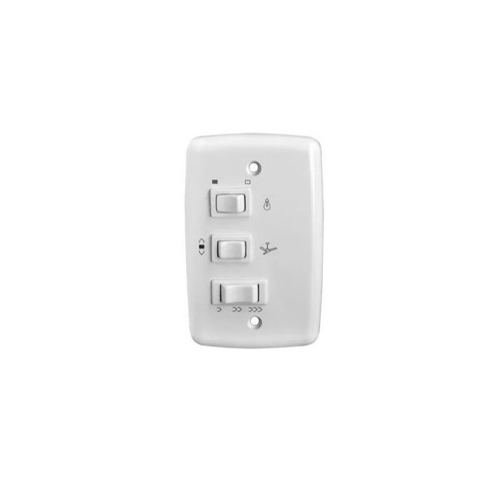 Permite ligar e desligar ventilador e lâmpada de forma independente, possui controle de 3 velocidades minimo, médio e máximo. E o sentido de rotação de ventiladores, além da iluminação ambiente. Interruptor de acionamento da lâmpada do tipo paralelo compatível com a maioria dos ventiladores existentes no mercado.