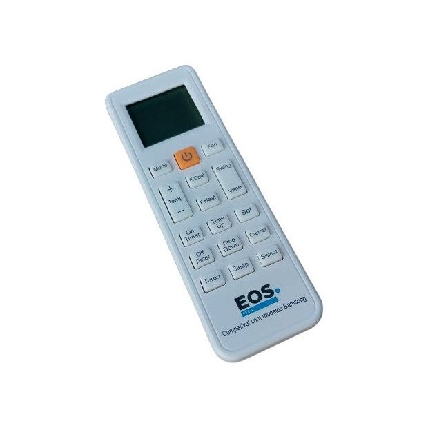 CONTROLE REMOTO UNIVERSAL EOS. Modelo compatível SOMENTE para ar condicionado da marca SAMSUNG. Todos modelos janela e split até 30.000 Btus. Não precisa programar, pois é específico para a marca SAMSUNG É só colocar pilha e usar.