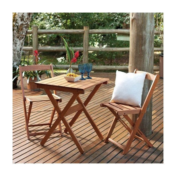 Conunto de Mesa Dobrável com 2 Cadeiras para Jardim e Varanda Veneza Mestra Móveis