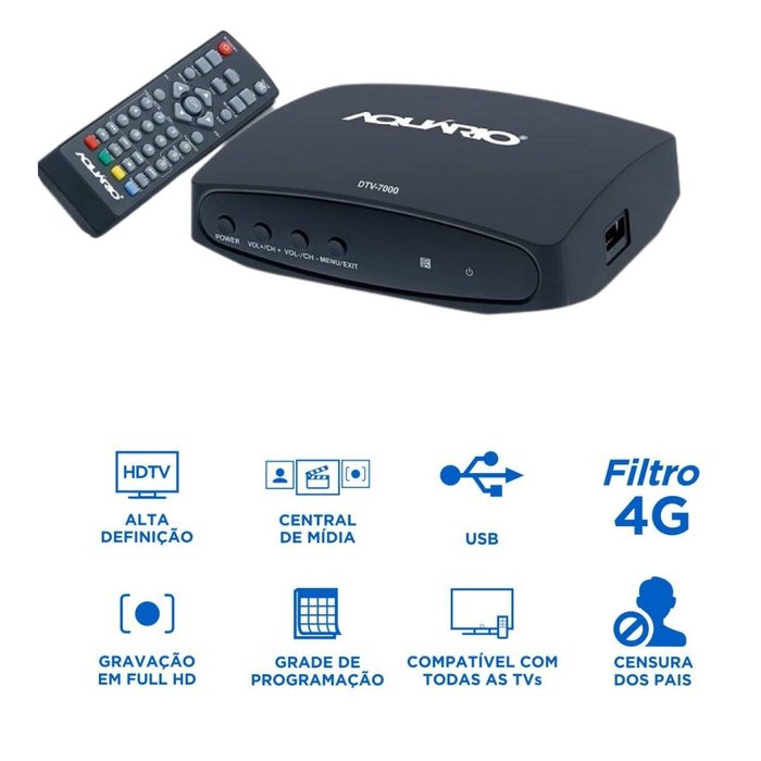 O Conversor Digital DTV-7000S é perfeito para quem tem um televisor fabricado antes de 2010 e não conta com um conversor interno como nas TVs de tubo por exemplo. Com o desligamento do sinal analógico em todo o Brasil, os canais abertos serão transmitidos apenas através do sinal digital, ou seja, para assistir TV nos aparelhos mais antigos você vai precisar de um conversor digital como o DTV-7000S.