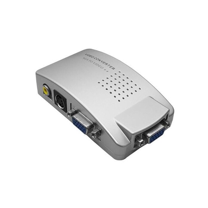 Conversor Pc Tv de Vga Para Av C/ Saídas Vga, Rca E S-vídeo. Com qualidade superior e design moderno e ousado. Ideal para quem precisa ligar o seu computador à TV ou projetor, mas não possui entrada VGA. Converte VGA para PC composto e S-vídeo do sinal da tela de TV.
