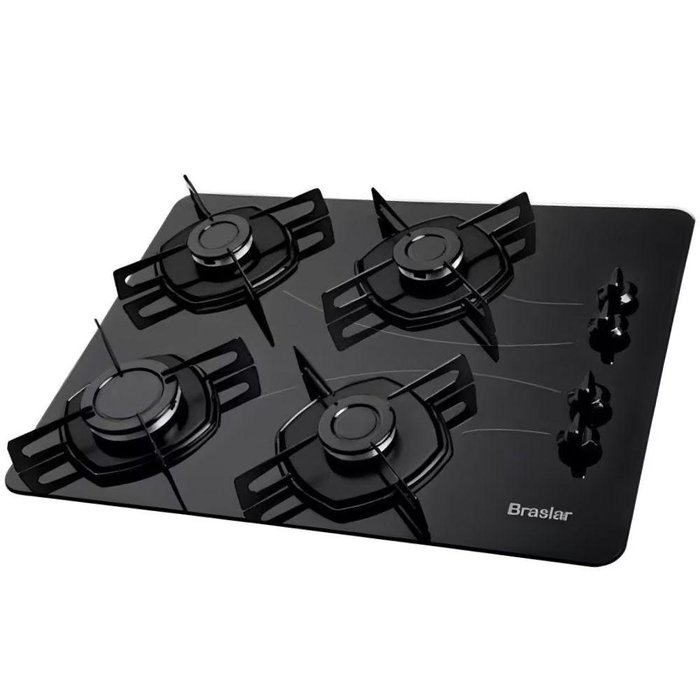 Cooktop 4 Bocas a Gás Braslar Pop com Mesa de Vidro Preto Bivolt