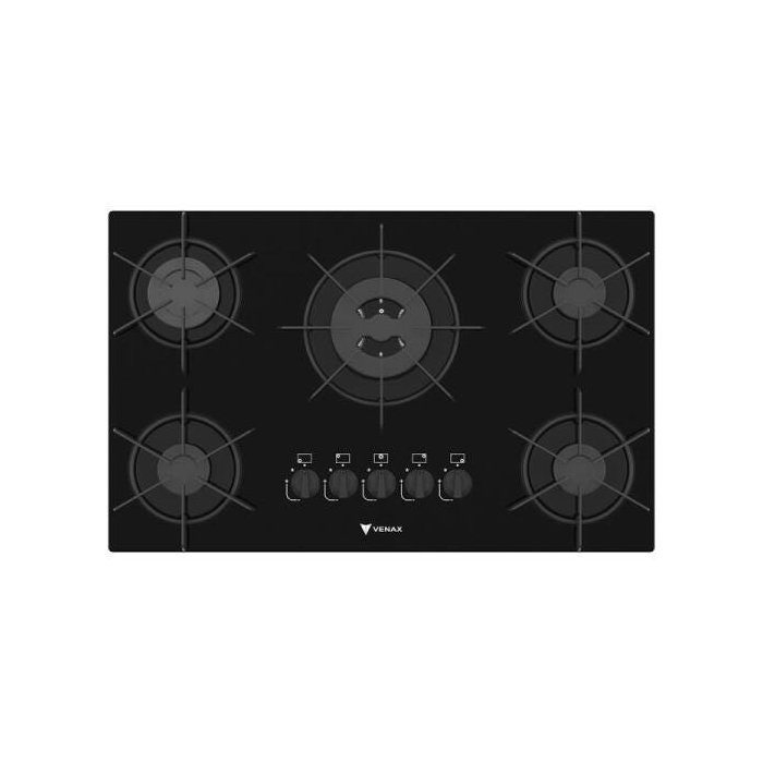 COOKTOP 5 BOCAS VENAX ARENA PRETO/PRETO GAS GLP