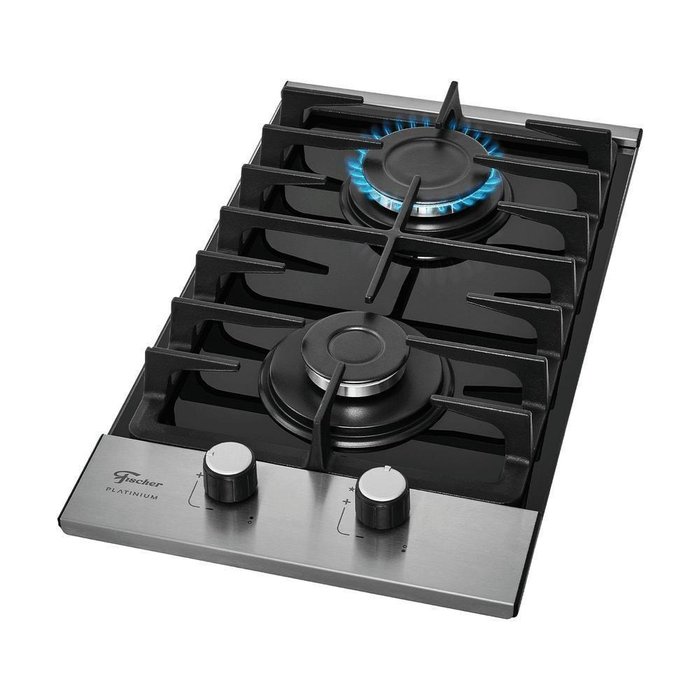 Cooktop A Gás Fischer 2 Bocas Platinium Com Trempe De Ferro Fundido Mesa Vidro 33795-92120 BivoltO encontro perfeito entre delicadeza e robustez: conheça a nova geração de Cooktops da Linha Platinium Fischer. Design e funções exclusivas, para você explorar diferentes técnicas culinárias com ainda mais estilo e sofisticação.Cooktop a Gás Fischer 2 Bocas Platinium com Trempe de ferro fundido Mesa Vidro possui trempe dupla em ferro fundido, garantindo maior estabilidade às panelas, além do nivelamento contínuo da trempe facilita o deslizar das panelas e confere ainda mais elegância ao conjunto. Possui 1 queimador rápido (3.000W) e 1 queimador semirrápido (1.750W), ideal para complementar o seu espaço e garantir agilidade nos preparos, conta com queimadores de tecnologia italiana de alta eficiência e durabilidade, e o acendimento é superautomático, acende com simples girar dos manipuladores.Além dos benefícios exclusivos, o produto conta com acabamentos nobres, como o suporte dos queimadores em cor preto fosco e frames frontais e posteriores em aço Inox, que conferem ainda mais beleza na sua cozinha.Especificações TécnicasCor: Preto