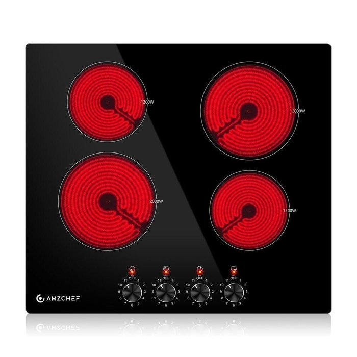 | Cooktop Elétrico AMZCHEF 24 com 4 Bocas, 6400W de Potência, 11 Níveis de Aquecimento e Indicador de Calor Residual (Preto)