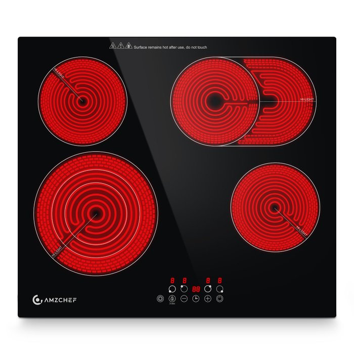 O Cooktop Elétrico AMZCHEF 24" de 4 Bocas oferece potência e eficiência para suas necessidades culinárias. Equipado com dois queimadores de alta potência e dois elementos expansíveis, ele oferece flexibilidade para utilizar diversos tipos de panelas e métodos de cozimento, desde fervura rápida até cozimentos lentos e delicados.