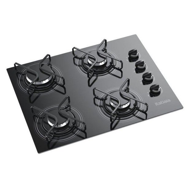 Cooktop Itatiaia 4 Bocas Vidro Preto Chama Rápida Bivolt