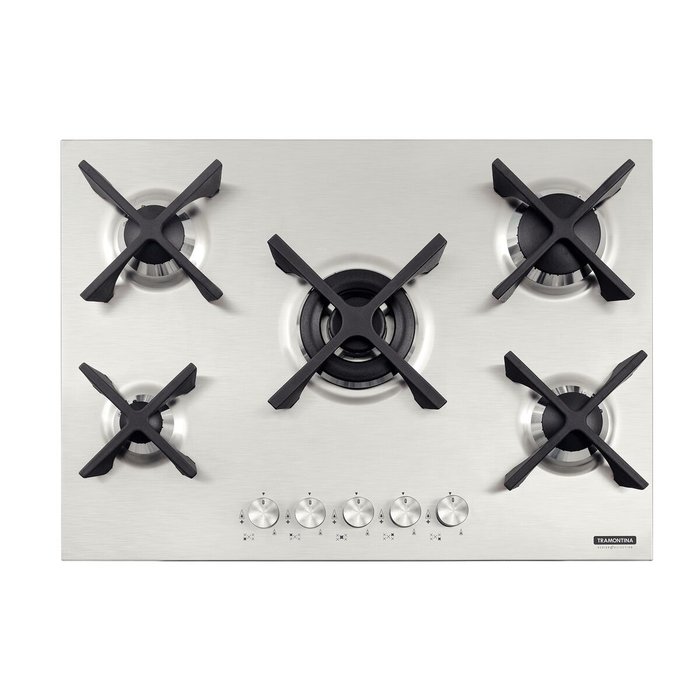 Cooktop Tramontina Penta Inox Flat 5gx Safestop 70cm 5 Bocas a Gás em Aço Inox 94727104 Penta Inox F