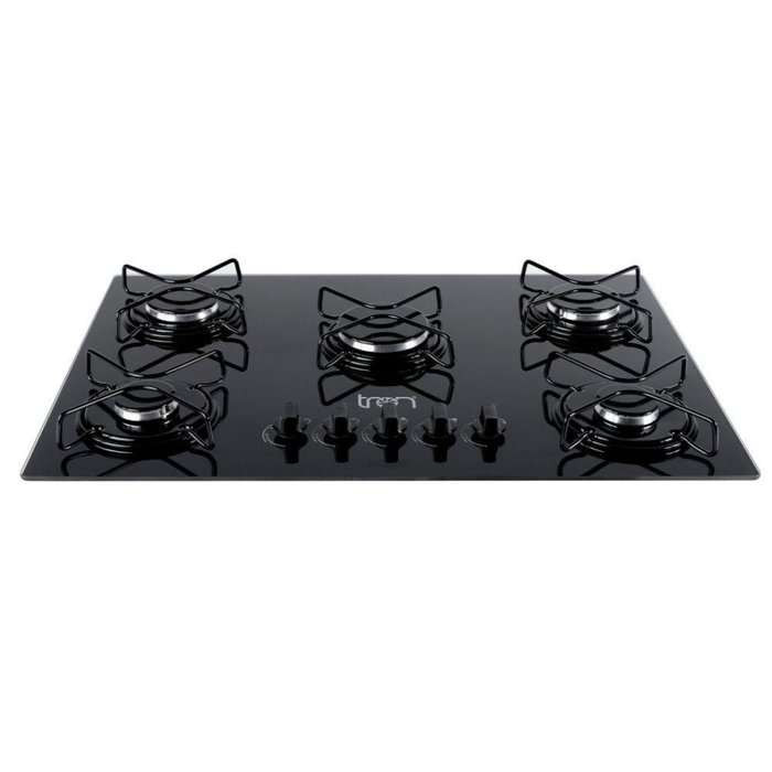 Cooktop Vidro a Gás 5 Bocas 75x52cm Bivolt Preto Tron Preto Bivolt