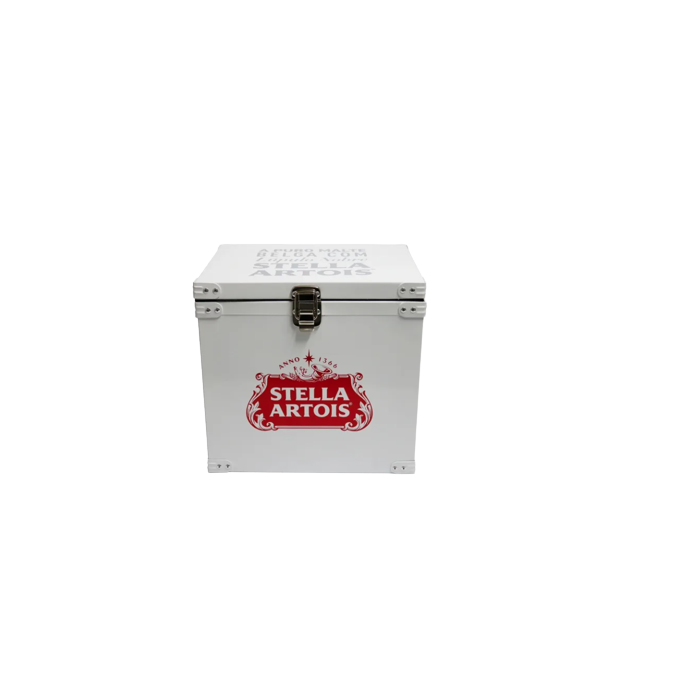 Informações do produto: Acessório indispensável quando se pensa em reunir a família ou amigos para pegar uma piscina, fazer um churrasco ou apenas organizar uma roda de conversa, seu objetivo é melhorar e tornar mais agradável cada momento, garantindo uma cerveja sempre geladinha direto do cooler. O cooler possui revestimento de plástico e 100% de metal galvanizado internamente, isotérmico. Tem capacidade para 12 stella artois de 330ml, já para latas tem capacidade para 24 unidades.