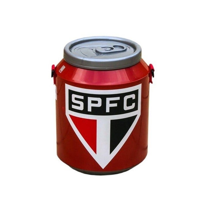 - Recipiente térmico em formato de lata de cerveja para gelar bebidas.