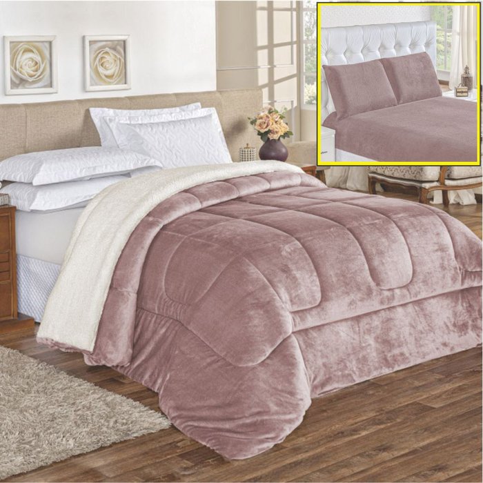 Coordenado Edredom Lã Carneiro e Lençol Queen Top Chick - Rosê Rosê