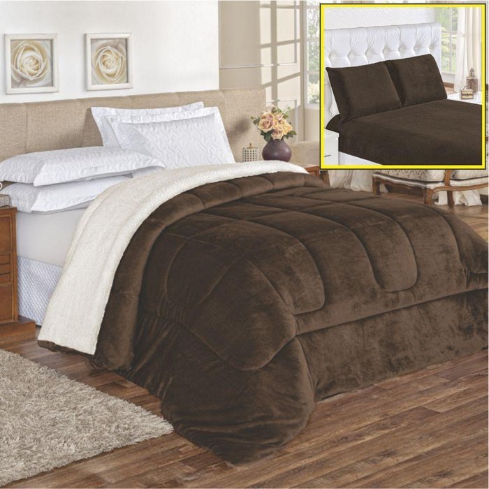 Coordenado Edredom Lã Carneiro E Lençol Queen Top Chick - Tabaco