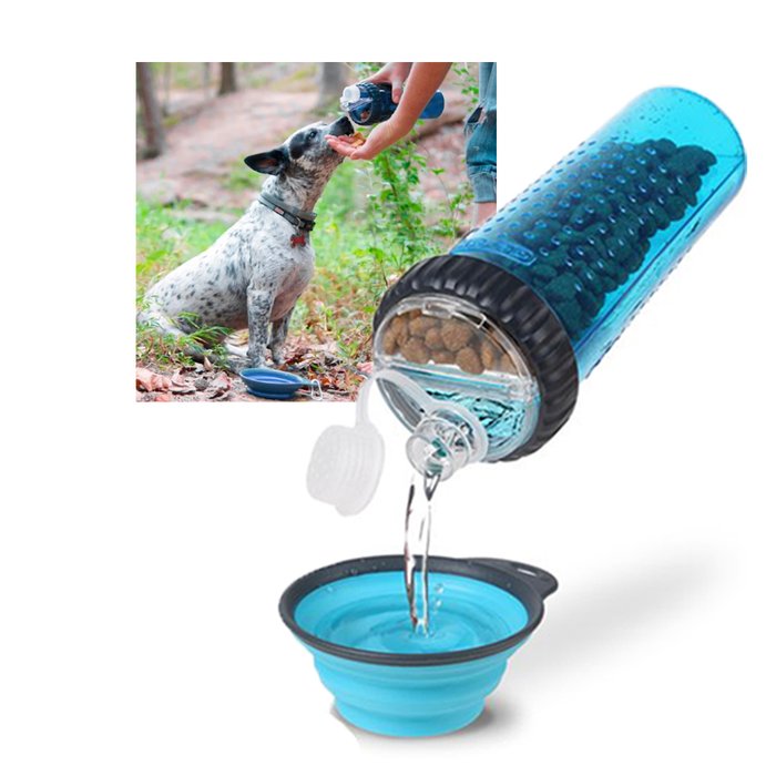 Este copo é ideal para passeio com seu pet, pode caminharcom seu bichinho sem preocupações. Os compartimentos são lado a lado, separados por um divisor integrado embutido dentro do copo. Podendo alimentando-o e hidrantando-o sempre que necessário. Acompanha um recipiente retratil, que ocupa menos espaço e tem capacidade e serve para para colocar a ração ou água do seu animalzinho.