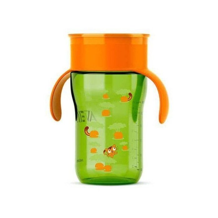 O COPO 360 - PHILIPS AVENT 360ml , possui alça e tampa higiênica, ideal para usar em casa ou em viagens. Com sistema anti-vazamento, possui um mecanismo que estimula naturalmente o desenvolvimento da musculatura orofacial da criança, através de uma válvula anti-vazamento 360º. O copo pode ser girado e o líquido não derrama. O líquido só é liberado quando o lábio da criança pressiona essa válvula para baixo.