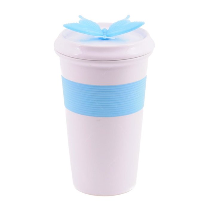 Copo Borboleta Azul em Cerâmica - 13x9 cm