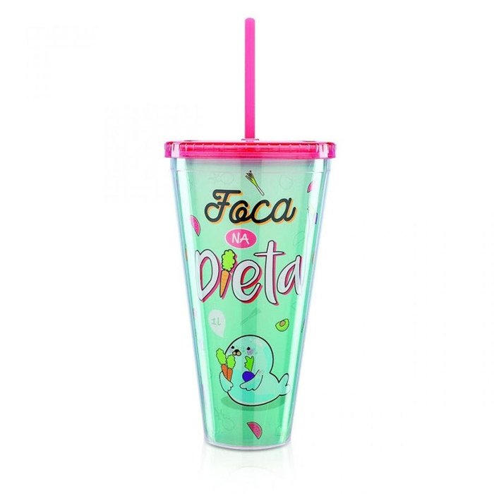Copo com Canudo 1 litro Foca na Dieta