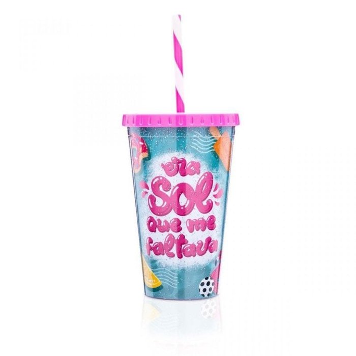 "Era sol que me faltava" e com certeza faltava um copo lindo como esse no seu dia a dia. Com uma estampa super fofa e colorida, o copo com canudo e glitter faz parte da linha da blogueira e youtuber Taciele Alcolea, inspirado nos seus cachorrinhos Kelvin e Babalu, esse copo traz toda a fofura que seu necessita. Com capacidade para 450 ml, o copo possui tampa e canudo além da estampa fofa. Ideal para tomar sua bebida preferida sempre que quiser. Ótima opção de presente criativo.