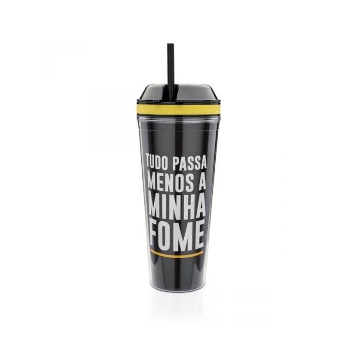 Copo com Canudo e Pote Frases Fome Ludi Imaginarium 430 ml