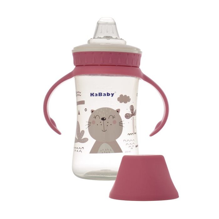 Copo de Bebê Mamadeira Com Bico de Silicone e Alças 250ml +6 Meses Kababy Rosa