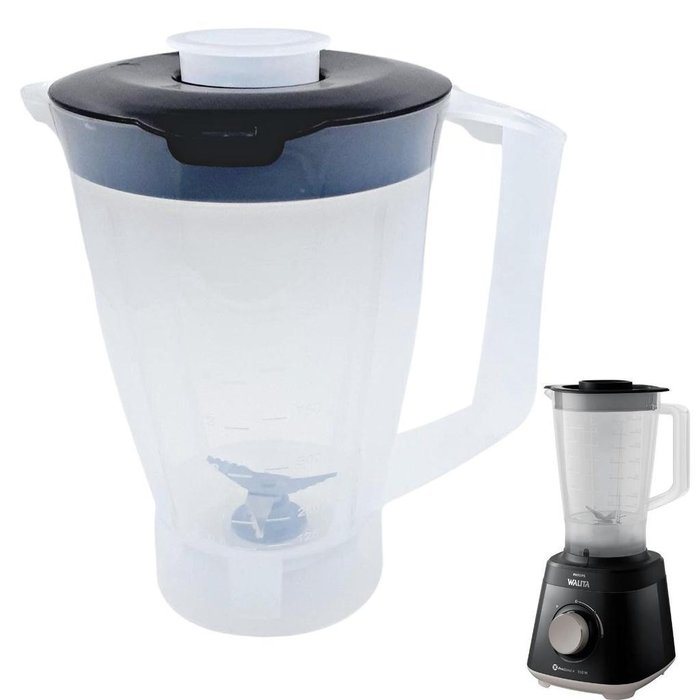copo jarra para liquidificador compatível com a marca walita modelos daily problend 4 ri2110 500w, ri2112 600w e ri2113 700w com tampa preta, material translúcido e não serve filtro. Compatível commarca: walita modelos: daily problend 4 ri2110550w, ri2112 600w e ri2113 700w