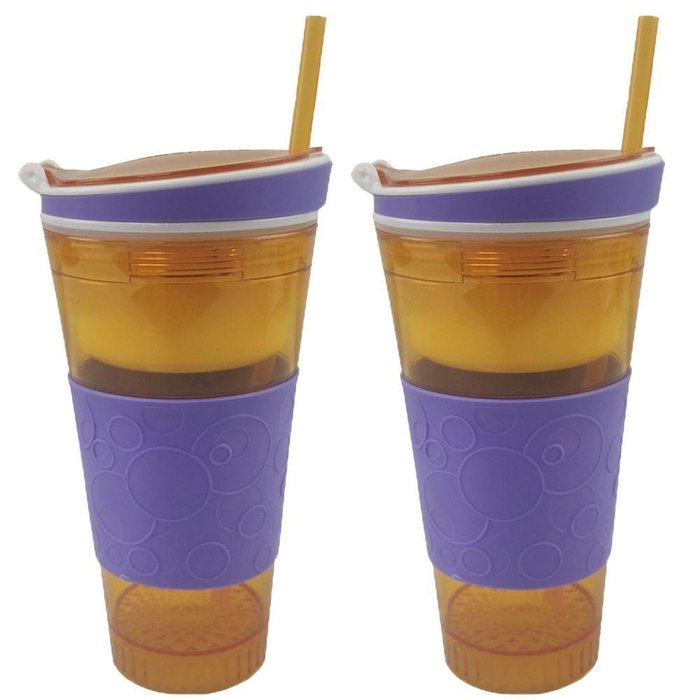 Copo Mágico 2 Em 1 Antivazamento Canudo Sucos Compartimento Frutas 2 Und Com dois compartimentos, esse copo é ideal para crianças por seu sistema antivazamento e acabamento antideslizante de fácil manuseio.