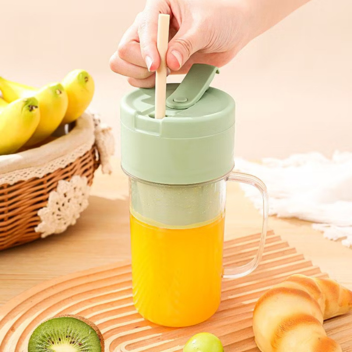 Copo Mixer Caneca Liquidificador Mini Juicer 500ml com 6 Laminas com Tampa e Canudo Recarregável por Verde