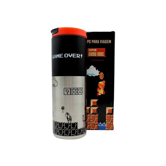 Copo Para Viagem Smart Super Mario Game Over Retrô 500 ml