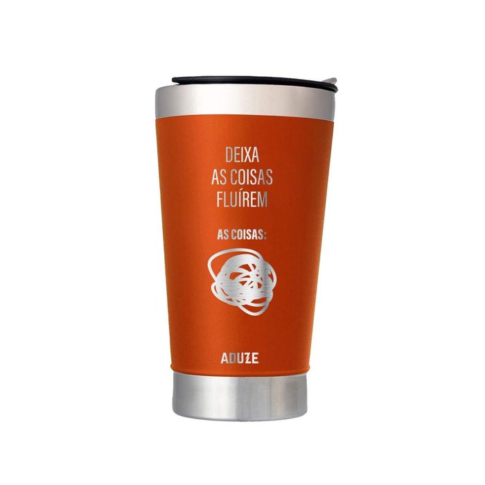 Copo Térmico Aduze com Tampa Frase Irônica Fluírem 500 ml Laranja Laranja