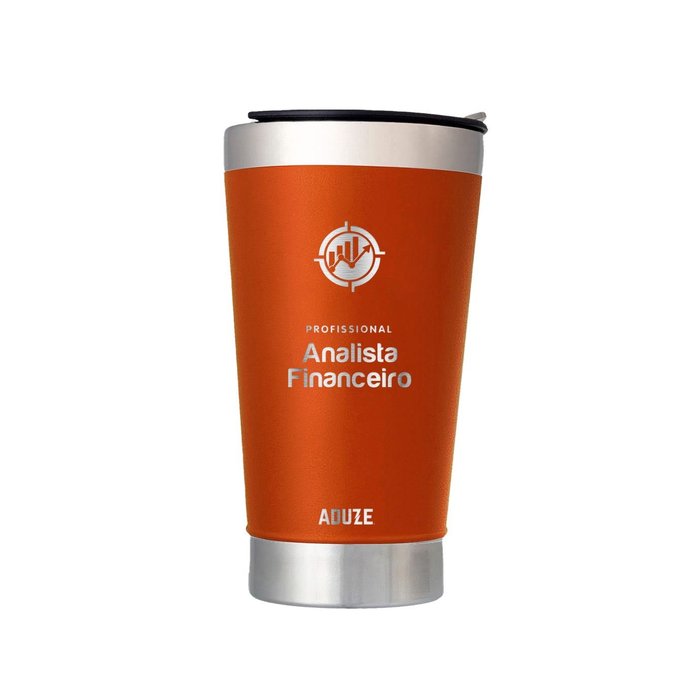 Copo Térmico Aduze com Tampa Profissão Analista Financeiro 500 ml Laranja Laranja