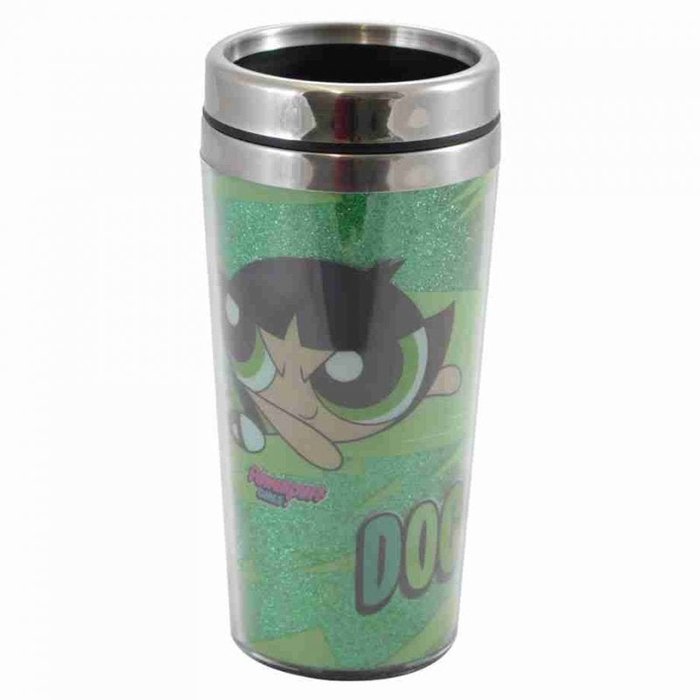 Lindo Copo Térmico Docinho As Meninas Super Poderosas para dar mais ânimo ao seu café. Possui capacidade para 450 ml, tampa com vedação de silicone e bico abre fecha. Ideal para tomar café, chás, chocolate quente ou sua bebida preferida. Ele mantém a temperatura da sua bebida por até 2 horas. Ótima opção para presentear!