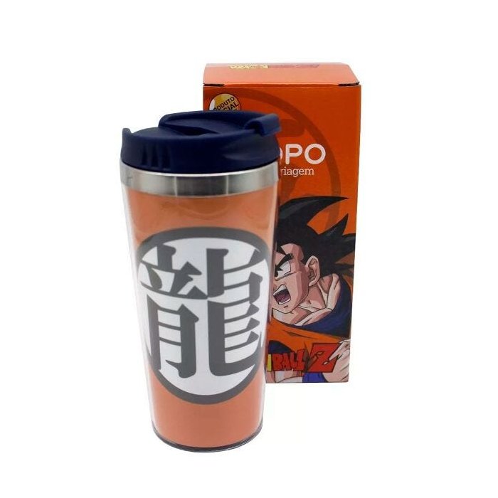 Copo térmico inspirado na série de animação Dragon Ball Z. Com capacidade para 450 ml, o copo possui uma tampa com bico abre e fecha que consegue manter a temperatura da sua bebida por muito mais tempo. Além disso ele possui a estampa do símbolo do Goku, usado nos quimonos que utilizava para treinar. Ideal para levar para a faculdade, trabalho, academia ou enquanto você curte a sua série. Perfeito para bebidas quentes ou frias.Ótima opção para presentear quem ama a série Dragon Ball Z.