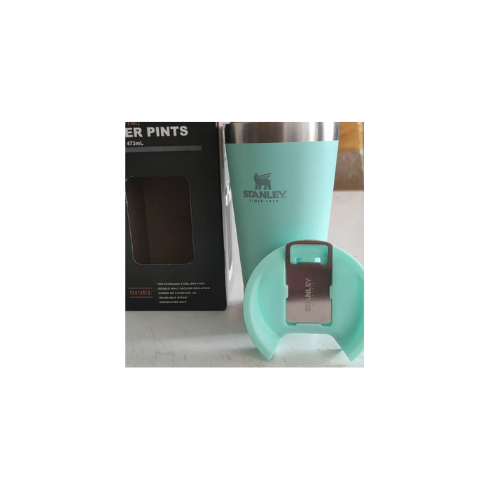 Copo térmico Metalico com abridor e tampa 473ml verde agua