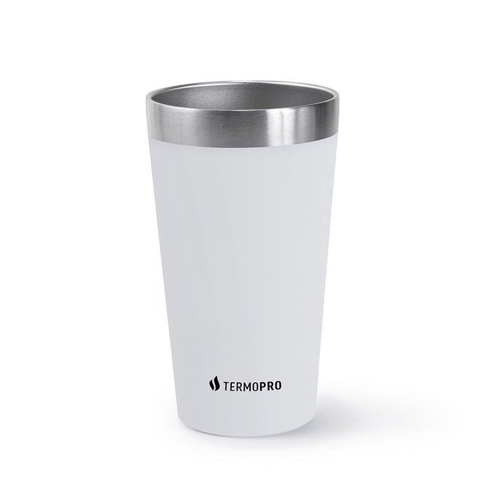 O Copo Térmico Branco Termopro é ideal para manter suas bebidas geladas por até 4 horas, com gelo por até 15 horas e bebidas quentes por até 45 minutos. Ele também possui alguns diferenciais, como design, alta resistência e durabilidade.O Copo Térmico para Cerveja 473 ml Termopro o possui parede dupla de aço inox com isolamento à vácuo, parede externa que não transpira, pode ser levado à máquina de lava-louças e acompanha embalagem presenteável.. Mantém a bebida gelada por até 4h, gelada com gelo por até 15h e quente por até 45 minutos. BPA Free. Lançamento 2022