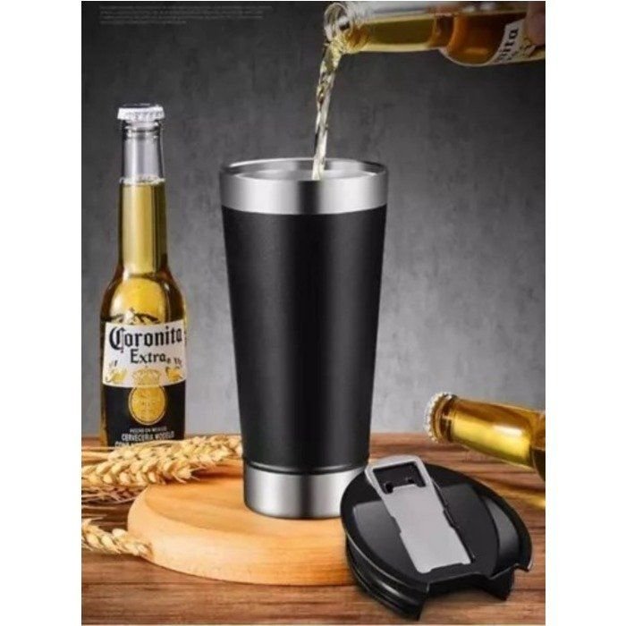 Copo Termico para Cerveja Cafe Cha em Inox com Tampa e Abridor de Cerveja 473ml