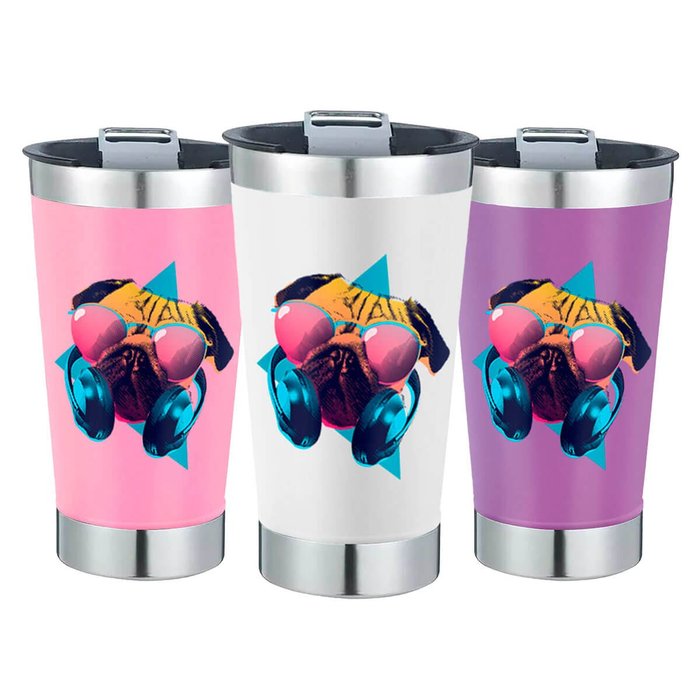 Copo Térmico Pug Pop Dog Cachorro com Tampa e Abridor Chopp Presente Super