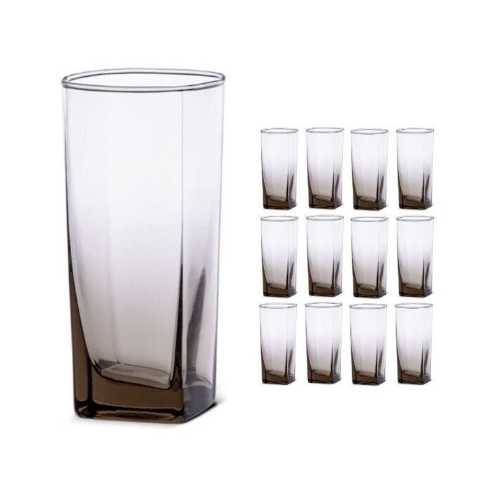 Copo Vidro 320ml (Suco, água) BALI SOLID kit com 12 Cinza