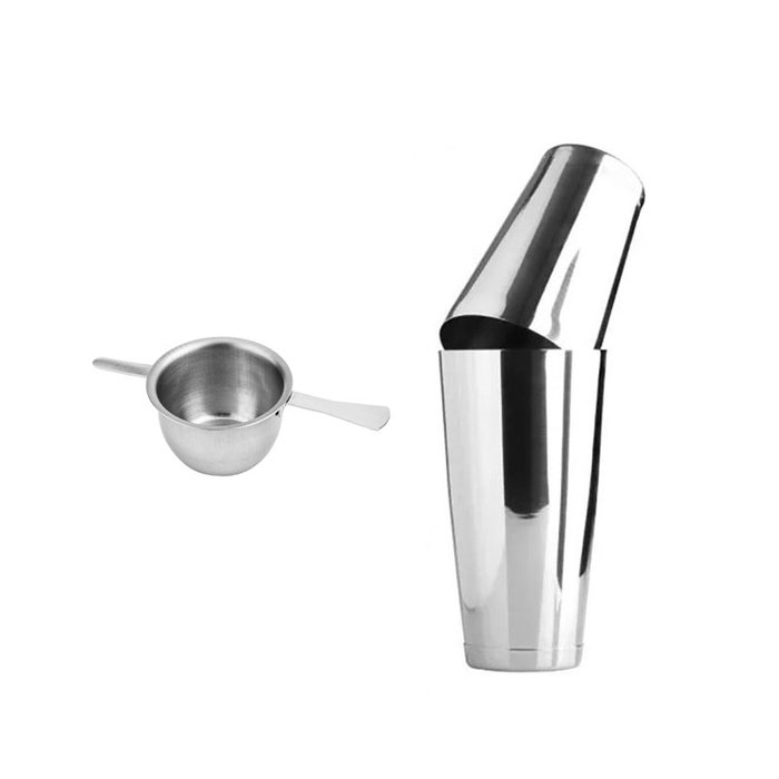 Coqueteleira Boston Copo Duplo e Dosador Drinks Inox Profissional Aço Inox