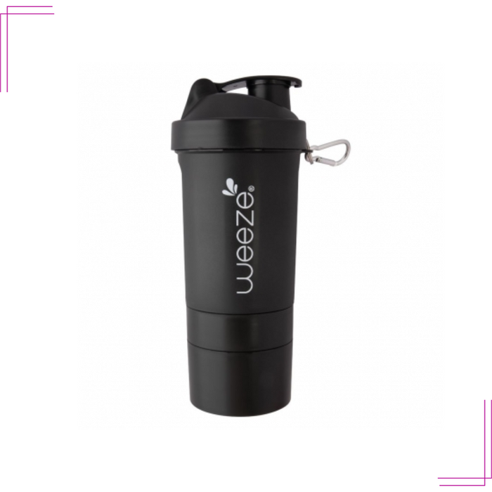 Esta coqueteleira é a escolha perfeita! Possui três compartimentos e misturador integrado, você pode levar todos os suplementos e ingredientes necessários em um único recipiente.